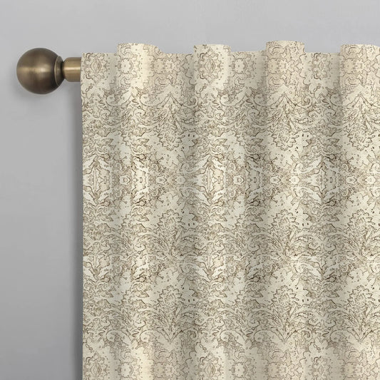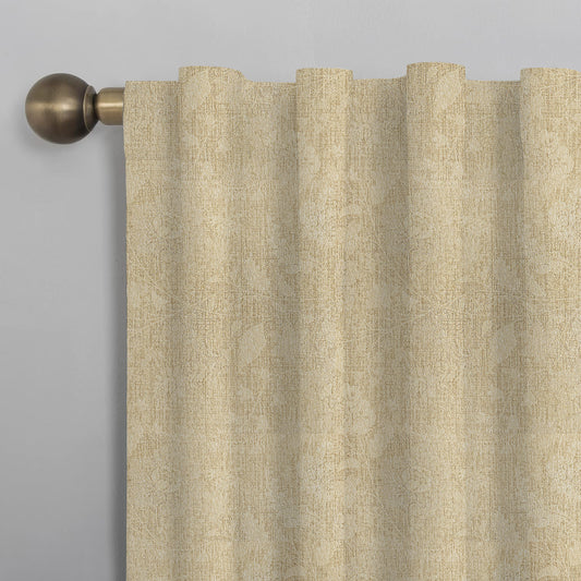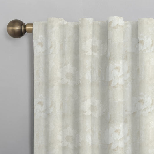 Y502 Elegant Linen Lotus Jacquard Blackout Back Tab Curtains