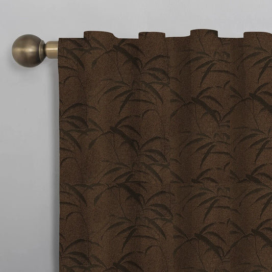 Y408 Vintage Leaf Jacquard Chenille Blackout Back Tab Curtains/Drapes