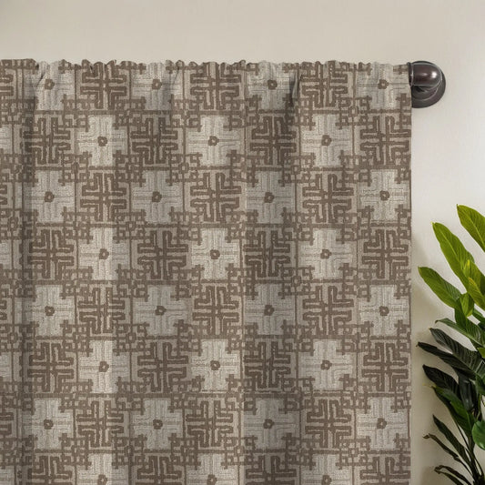 Y102 Linen Vintage Geometric Jacquard Blackout Pinch Triple Pleats Drapes