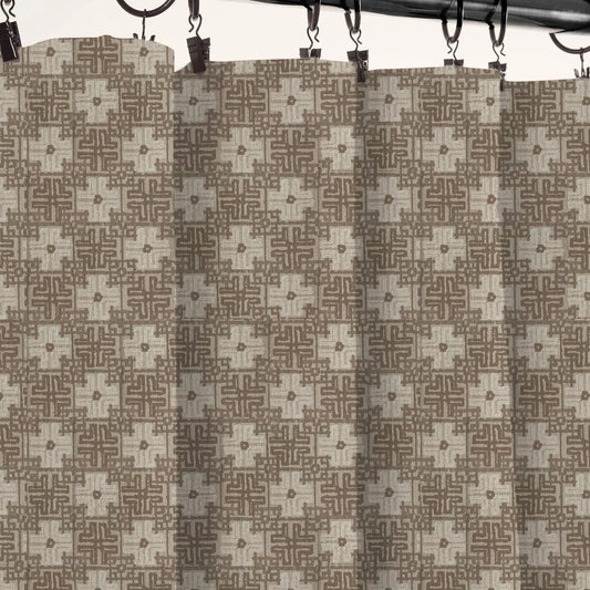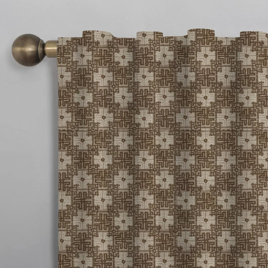 Y102 Linen Vintage Geometric Jacquard Blackout Back Tab Curtains