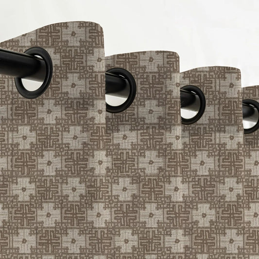 Y102 Linen Vintage Geometric Jacquard Blackout Grommet Curtains