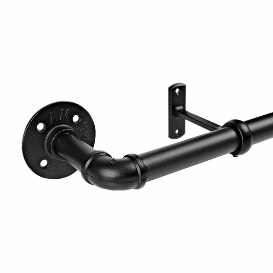 Adjustable Black Industrial Curtain Rod Set with Brackets and Rings