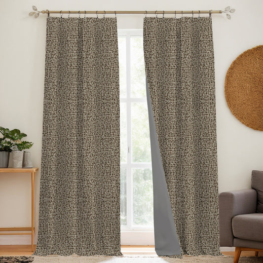 Y102 Linen Vintage Geometric Jacquard Blackout Flat Panel Curtains