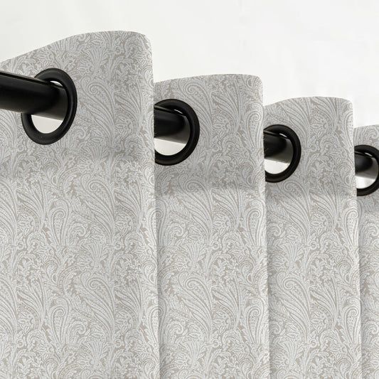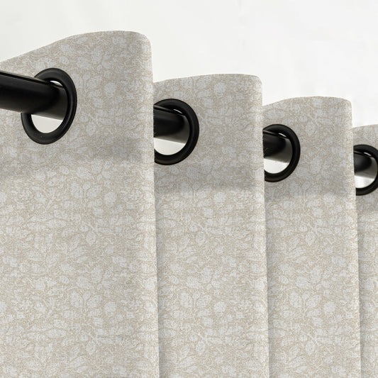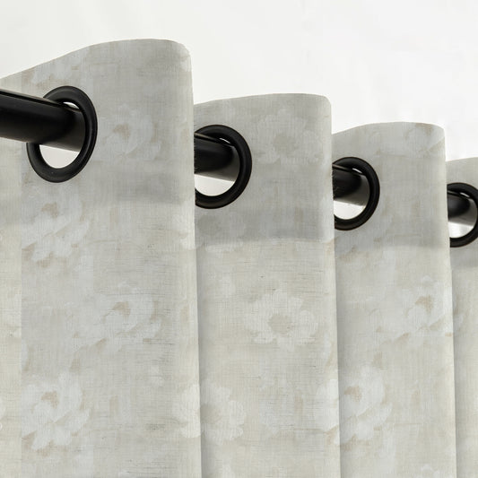 Y412 Modern Romantic Floral Linen Jacquard Blackout Grommet Curtains