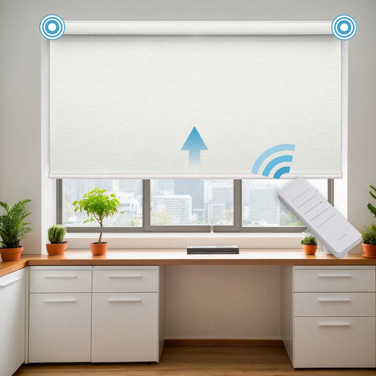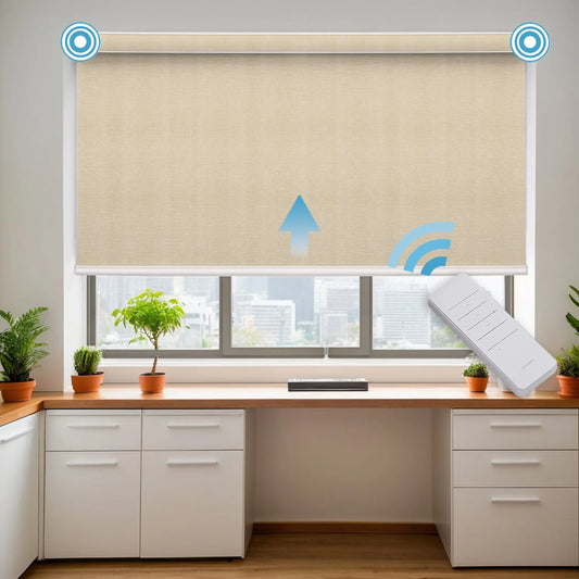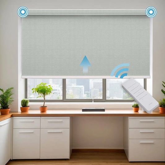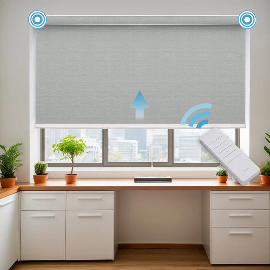 A118 Motorized 1% Openness Twill Cordless Shades with Valance