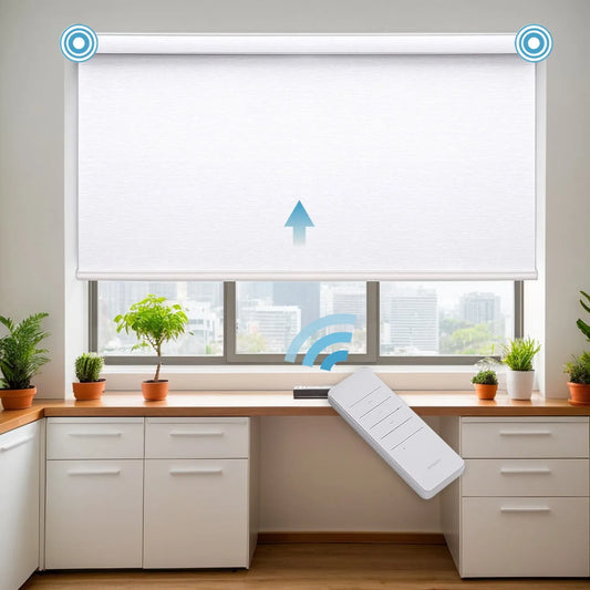 A110 Motorized Light Filtering Roller Shades with Valance