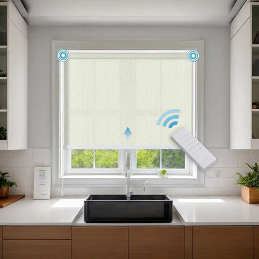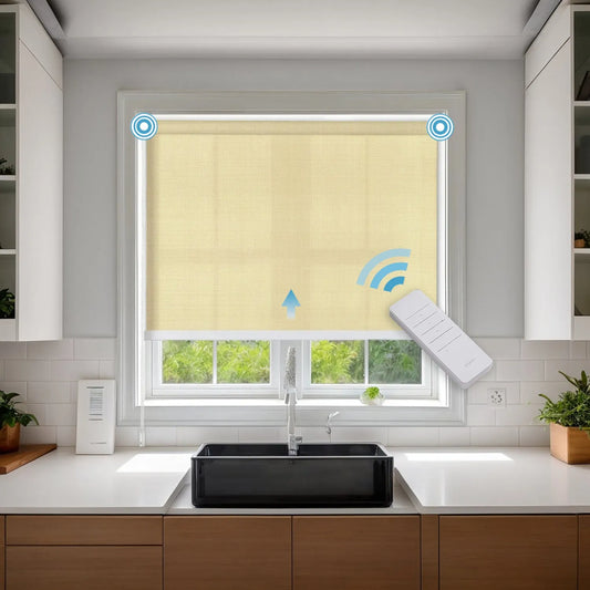 A133 Motorized Premium Semi-Sheer Roller Shades with Valance