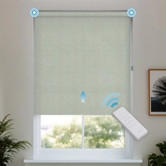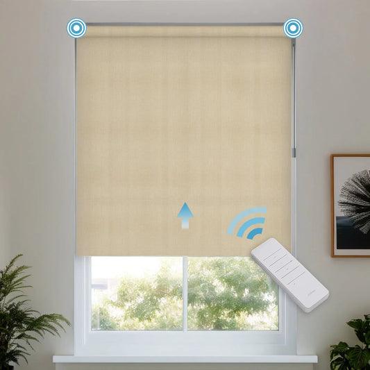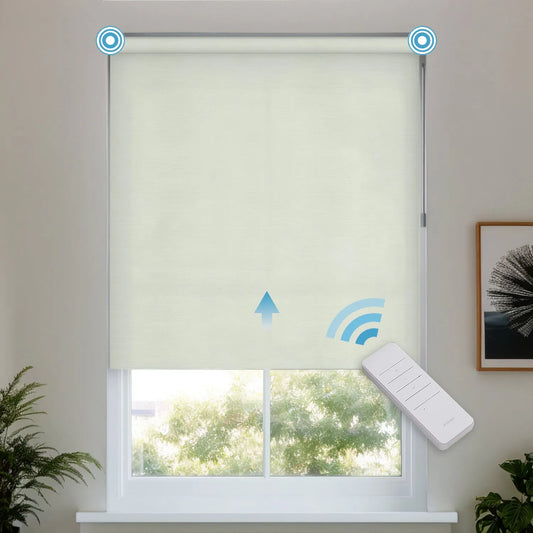 A122 Motorized Linen Blend Semi-Sheer Roller Shades