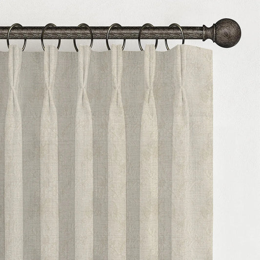 Y104 Linen-Cotton Floral Jacquard Textured Blackout Pinch Double Pleats Draperies