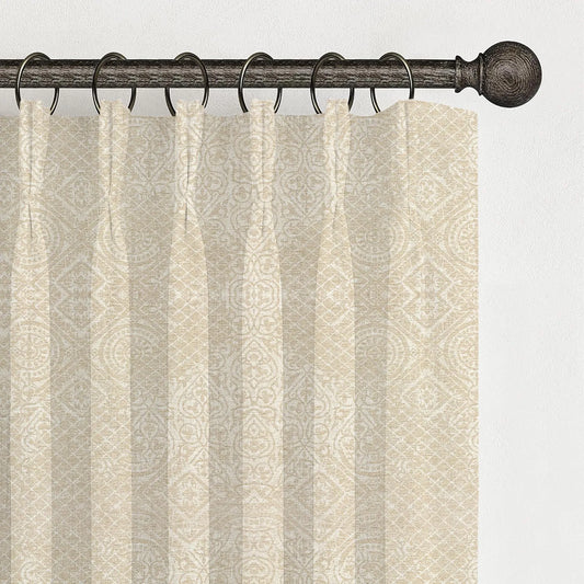 Y102 Linen Vintage Geometric Jacquard Blackout Pinch Double Pleats Drapes