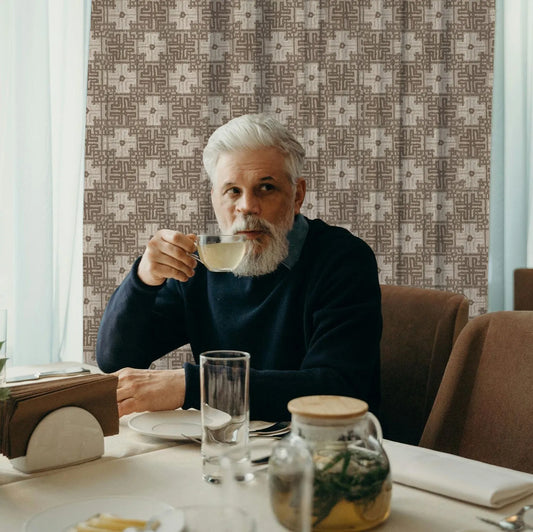 Y102 Linen Vintage Geometric Jacquard Blackout Pinch Triple Pleats Drapes