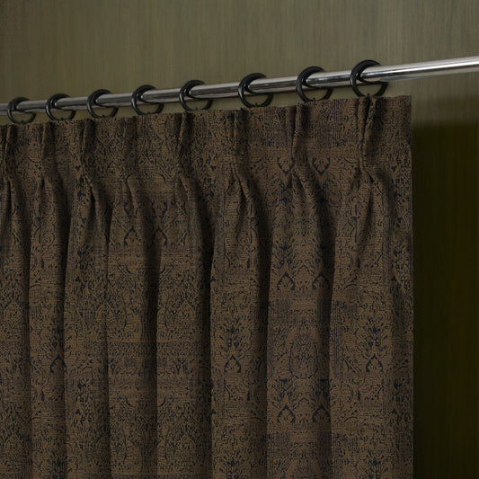 Y104 Linen-Cotton Floral Jacquard Textured Blackout Pinch Triple Pleats Draperies