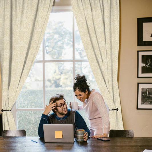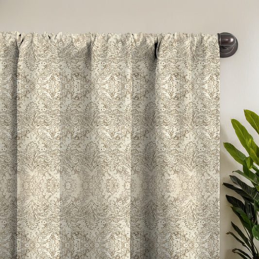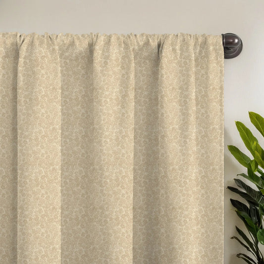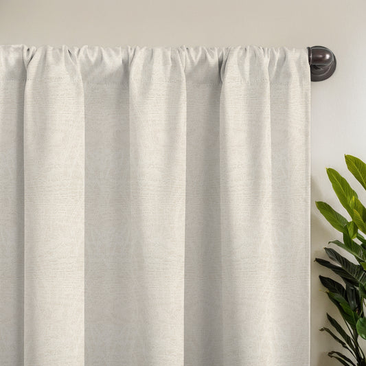 Y502 Elegant Linen Lotus Jacquard Blackout Rod Pocket Curtains