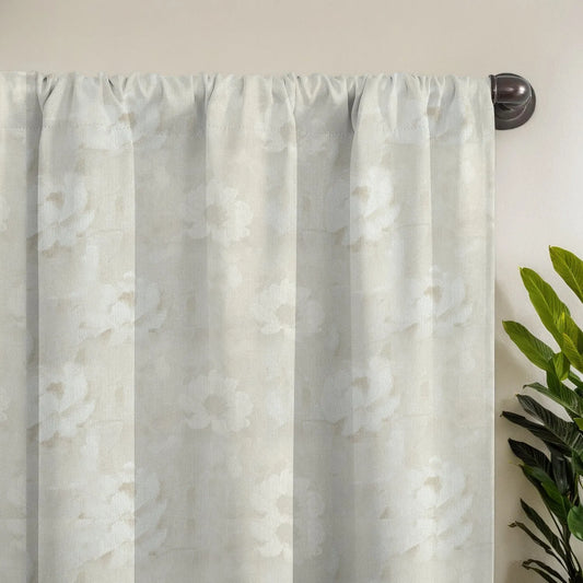 Y412 Romantic Floral Linen Jacquard Blackout Rod Pocket Drapes