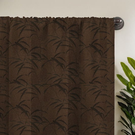 Y408 Vintage Leaf Jacquard Chenille Blackout Rod Pocket Curtains/Drapes