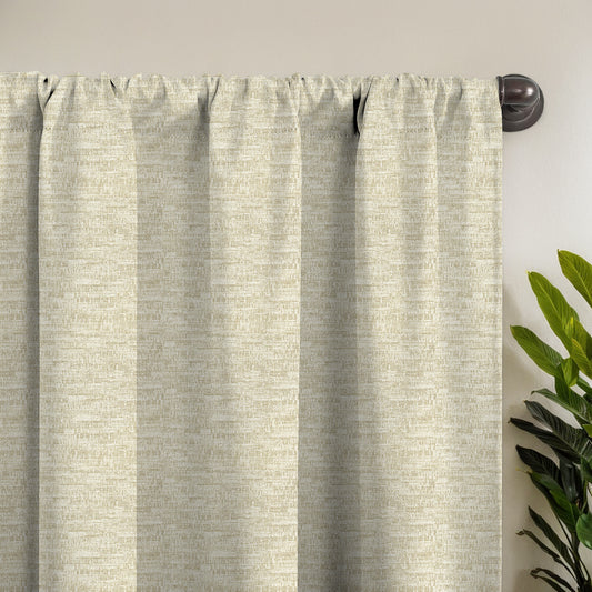 Y404 Linen Cozy Checkered Jacquard Blackout Rod Pocket Curtains