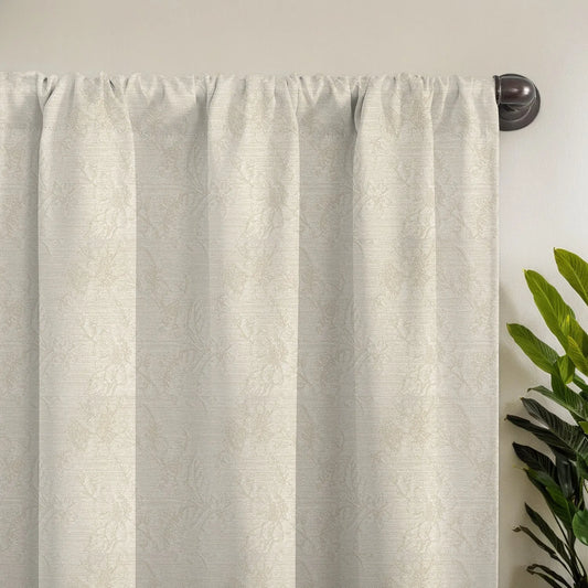 Y204 Linen Modern Floral Jacquard Blackout Rod Pocket Draperies
