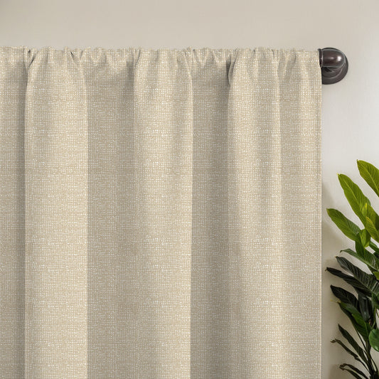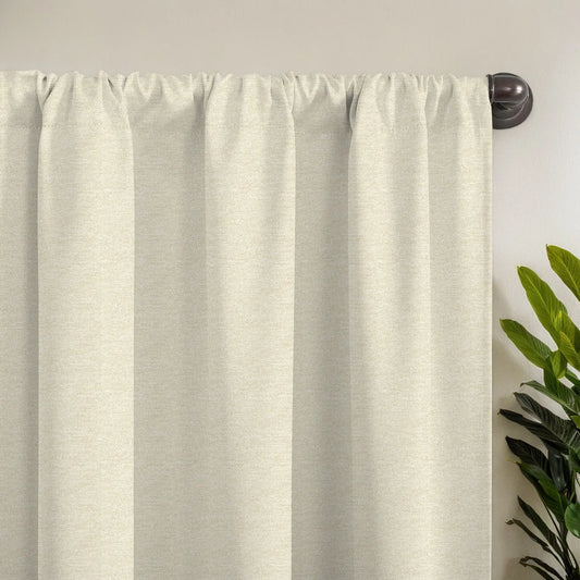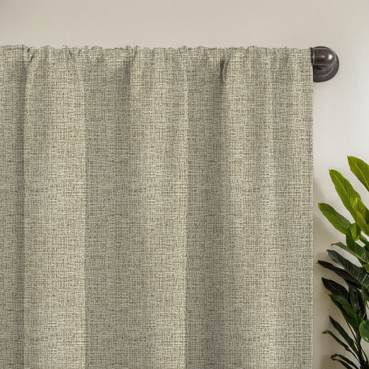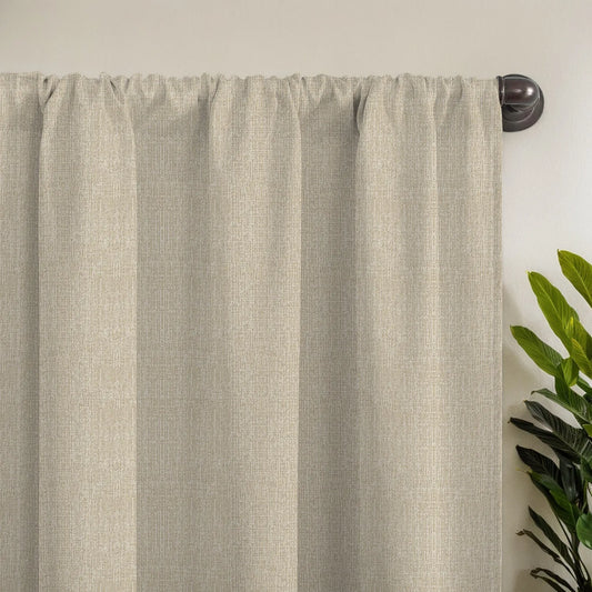 Y105 Classic Striped Linen-Textured Burlap-Look Blackout Pinch Rod Pocket Curtains