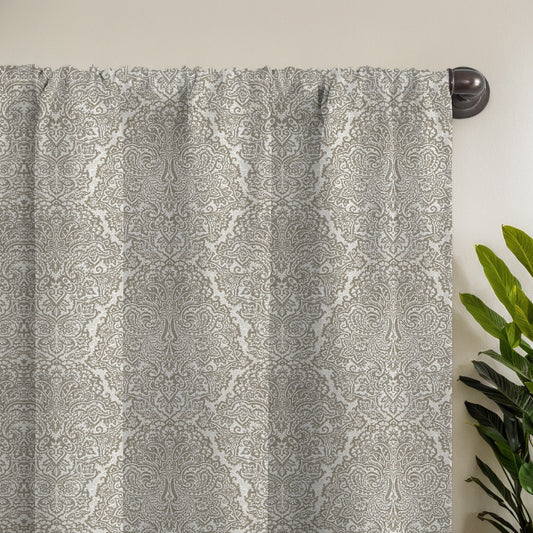 Y202 Linen Victorian Jacquard Blackout Rod Pocket Curtains
