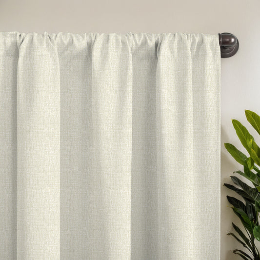 Y103 Linen Small Check Jacquard Blackout Rod Pocket Curtains
