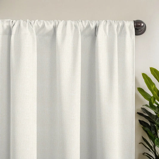 Y207 Modern Luxury Linen Small Check Blackout Rod Pocket Drapes