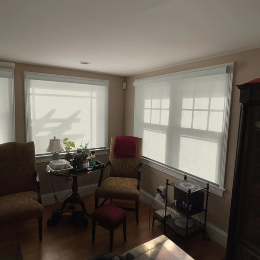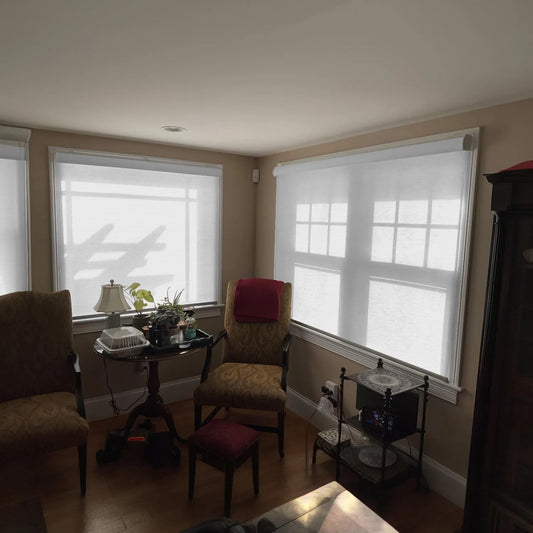 A129 Premium Semi-Sheer Cordless Spring-loaded Roller Shades with Valance