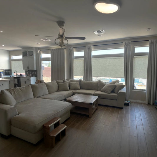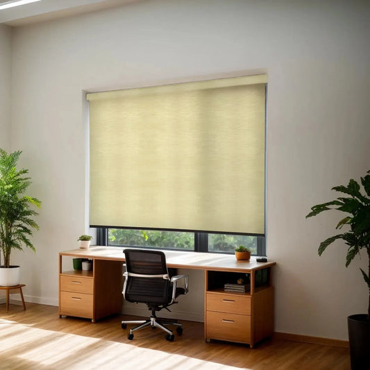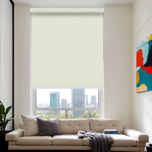 A122 Linen Blend Semi-Sheer Cordless Spring-loaded Roller Shades with Valance