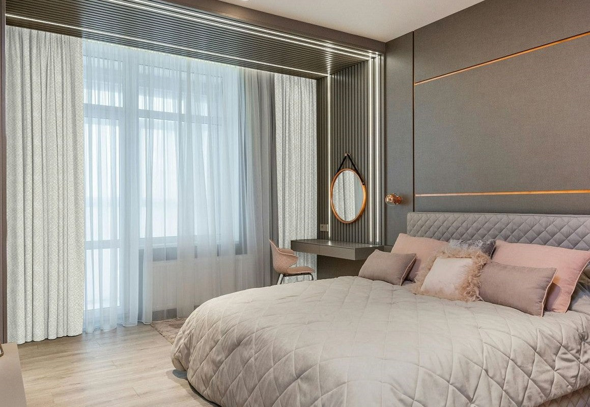 Las cortinas que filtran la luz difunden suavemente la luz solar, creando una luz suave y sin deslumbramientos en la habitación. Las cortinas opacas reducen más la luz que las que filtran la luz, lo que ayuda a mantener una atmósfera más tenue durante el día. Las cortinas opacas, en cambio, están diseñadas para bloquear completamente la luz entrante. A pesar de estas variaciones, los tres tipos bloquean eficazmente los dañinos rayos UV, protegiendo sus muebles e interiores.
