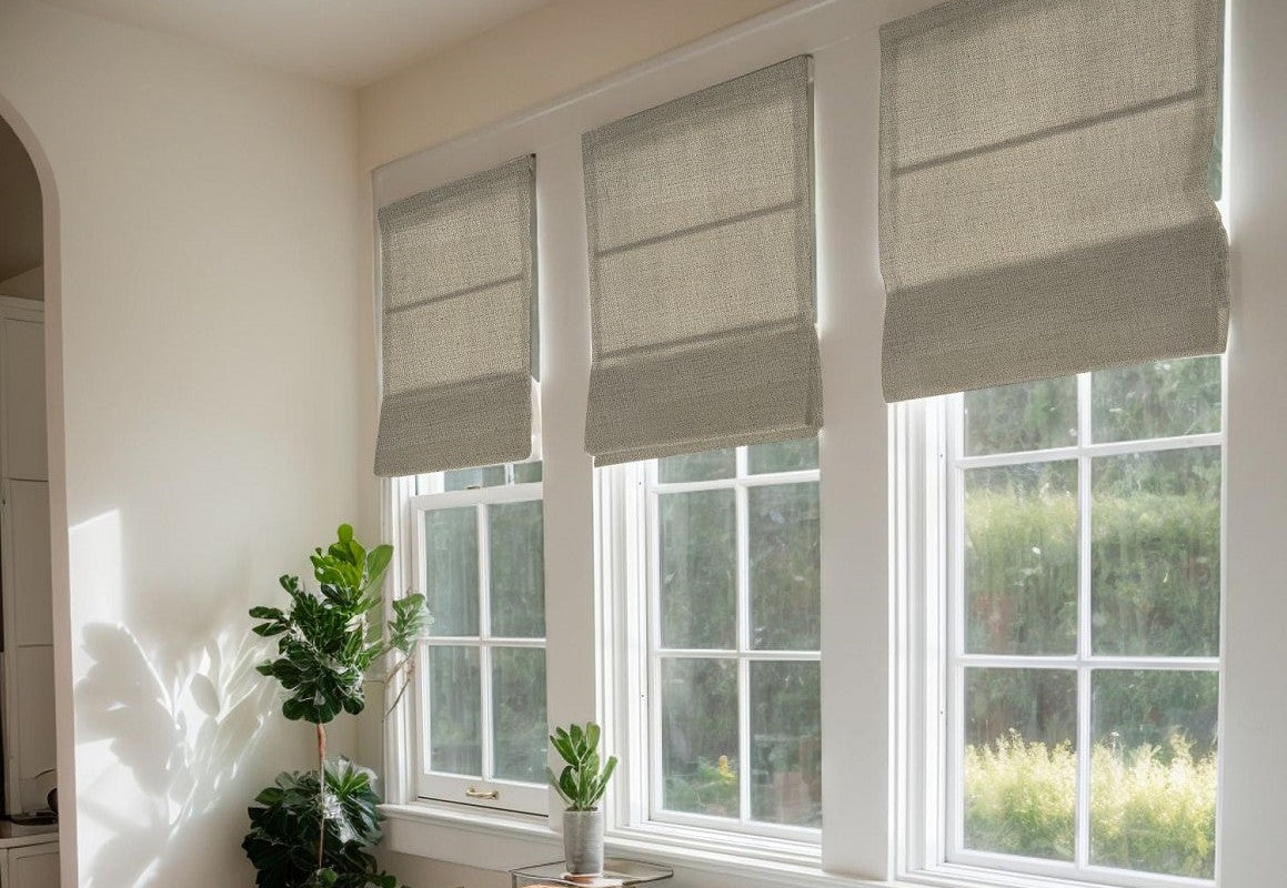 Enhance your windows with the natural elegance of Linen Roman Shades, crafted from a premium blend of 10% natural linen and 90% durable polyester. The linen fibers provide a soft, breathable texture, while polyester adds durability, wrinkle resistance, and easy maintenance. Designed in a classic Roman shade style, these shades fold neatly for a clean, timeless look. Their light-filtering fabric gently softens sunlight while maintaining privacy, making them ideal for living rooms, bedrooms, or dining spaces. A versatile and stylish choice that combines natural charm with practical functionality.