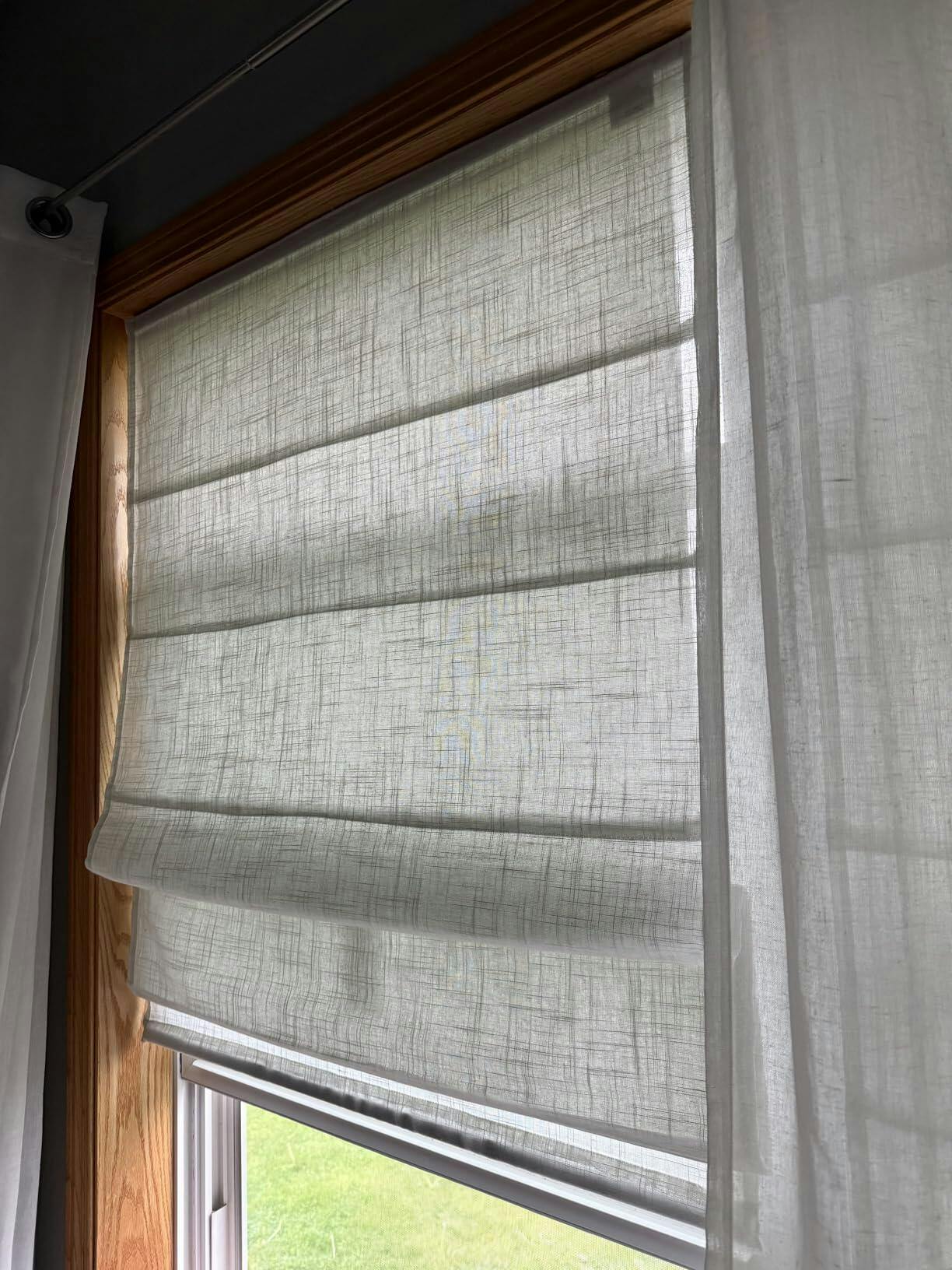 Bring timeless elegance to your windows with Linen Roman Shades, crafted from a premium blend of 10% natural linen and 90% durable polyester. The linen fibers provide a soft, breathable texture, while polyester adds durability, wrinkle resistance, and easy care. Designed in a classic Roman shade style, these window treatments fold neatly to create a clean, tailored appearance. Their light-filtering fabric gently diffuses sunlight while providing privacy, making them ideal for living rooms, bedrooms, or dining areas. A versatile and stylish choice that combines natural charm with practical functionality.