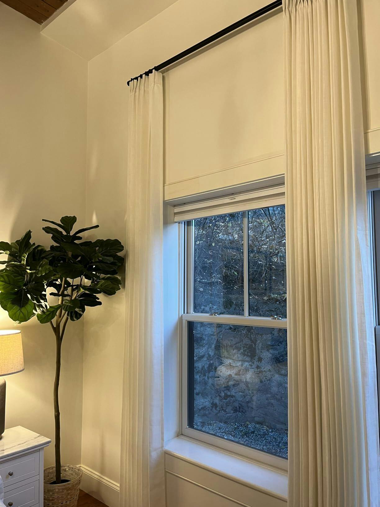 If your drapery rod is not already in place, you will first need to determine the height at which you want to place your drapery rod. Please ensure there is at least 4-6 inches(10-15cm) space above the curtain rod to facilitate proper installation and use of the curtains.