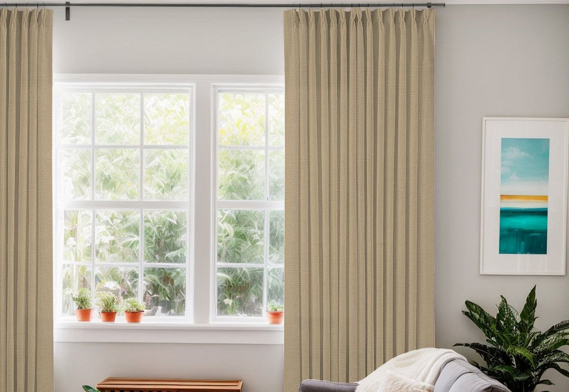 Bring refined elegance to your windows with Linen French/Pinch Double Pleats Drapes, crafted from a premium blend of 10% natural linen and 90% durable polyester. The linen fibers provide a soft, breathable texture, while polyester adds strength, wrinkle resistance, and easy maintenance. Designed with French double pleats, these drapes create structured, tailored folds that enhance sophistication in any room. Their light-filtering fabric softly diffuses sunlight while maintaining privacy, making them ideal for living rooms, bedrooms, or dining spaces. A timeless choice that combines classic craftsmanship with everyday practicality.