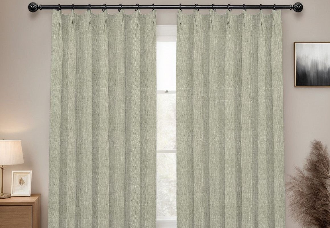 Bring luxurious sophistication to your windows with Linen French/Pinch Triple Pleats Drapes, crafted from a premium blend of 10% natural linen and 90% durable polyester. The linen fibers provide a soft, breathable texture, while polyester ensures strength, wrinkle resistance, and easy maintenance. Designed with triple pleats, these drapes create fuller, structured folds that offer a tailored and elegant look for any space. The light-filtering fabric softly diffuses sunlight while maintaining privacy, making them ideal for living rooms, bedrooms, or dining areas. A timeless choice that combines classic craftsmanship with modern practicality.
