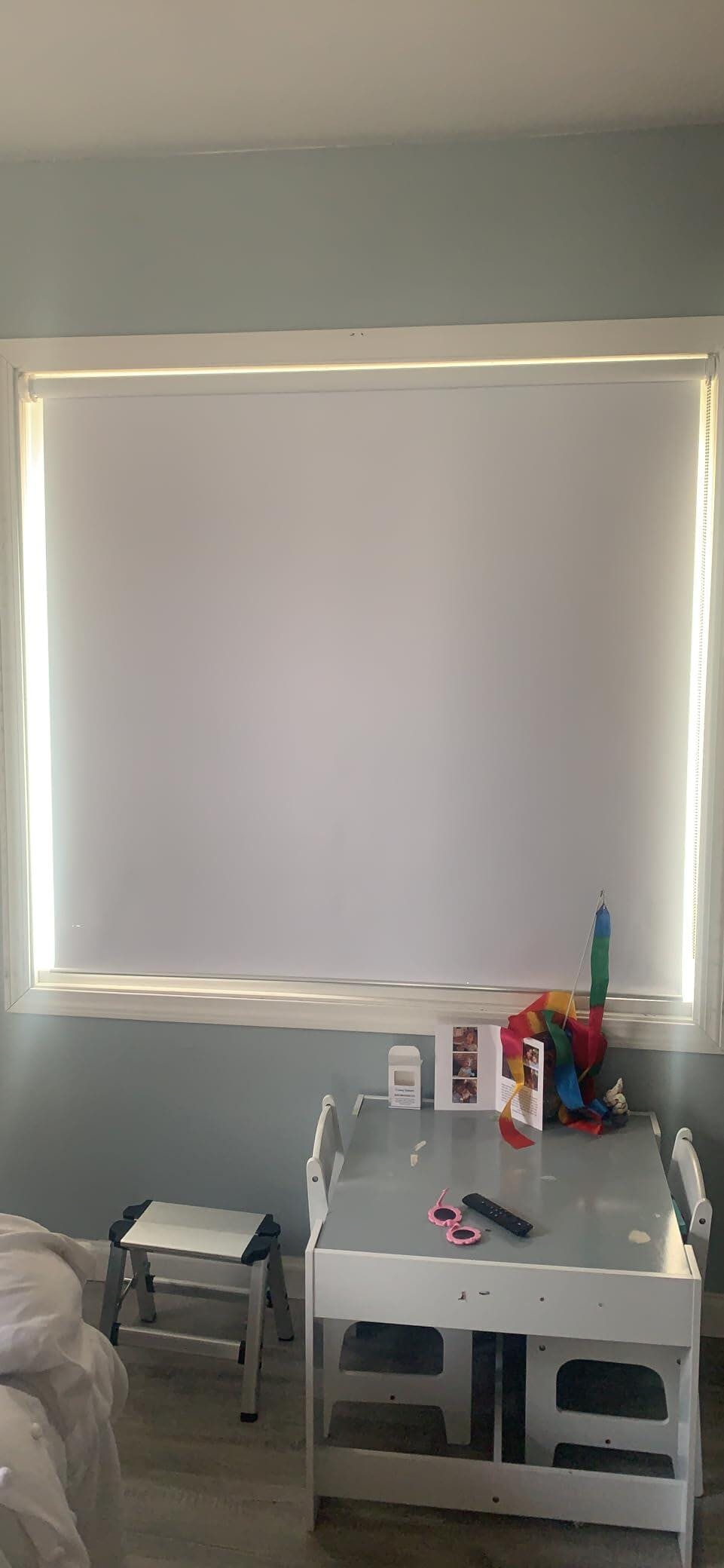 Step 1: Roll down the shade fully and secure it.