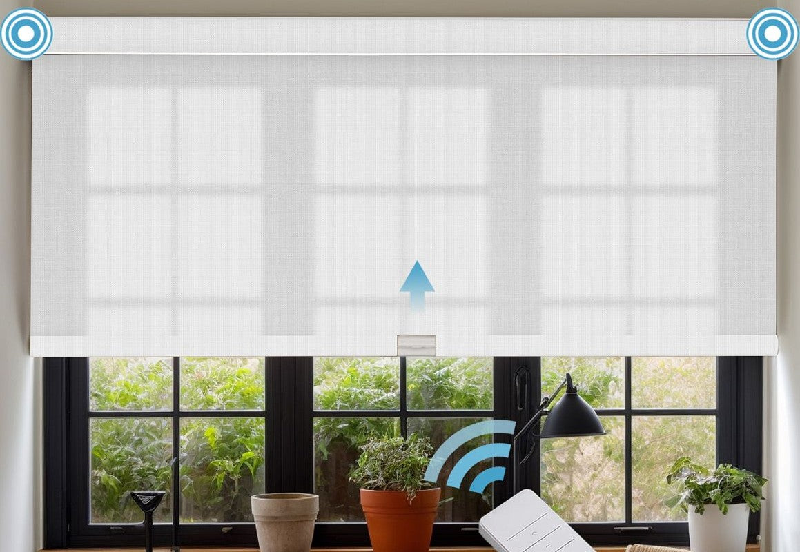 Experience smart light control with our Motorized 5% Openness Solar Shades with Valance — perfect for reducing glare while preserving your view. These energy-efficient shades block up to 95% of harmful UV rays, protect your interiors, and keep rooms comfortably lit. The modern valance adds a clean, finished look while concealing the roller mechanism. Control with a remote for ultimate convenience.