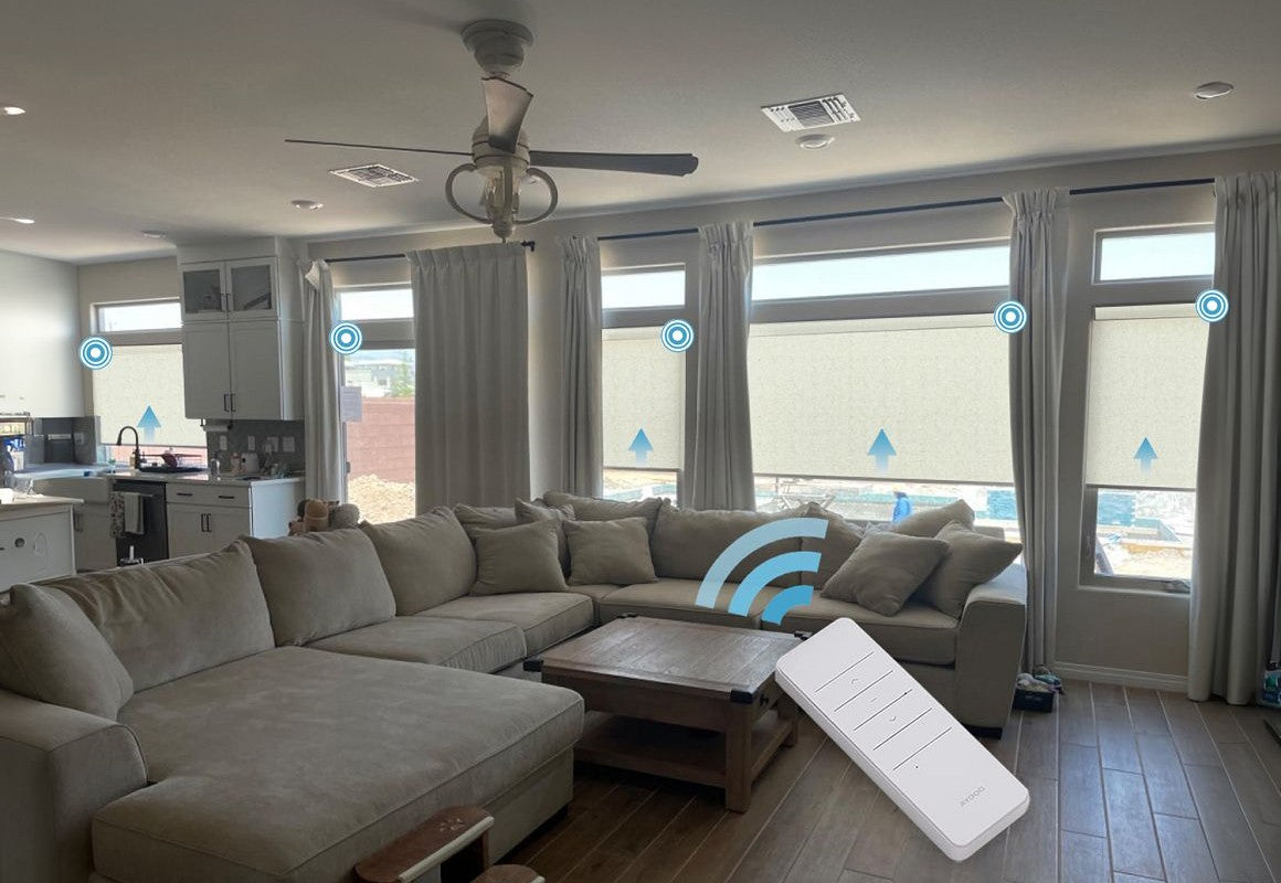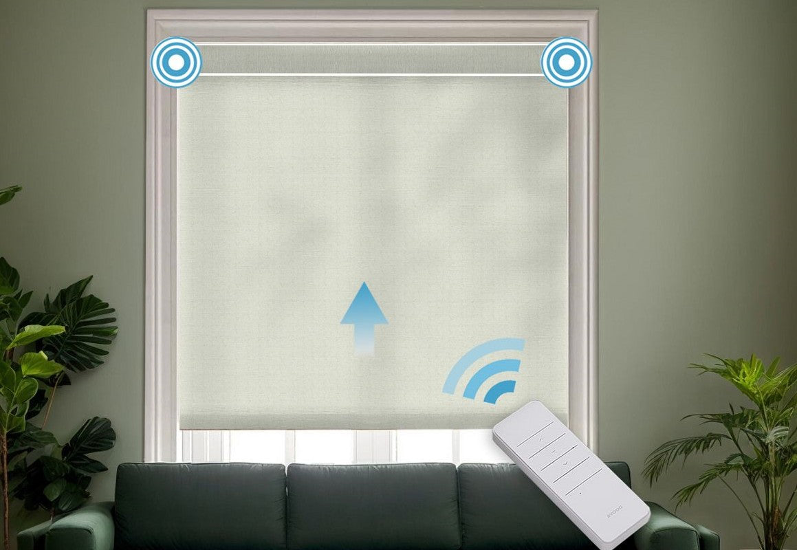 Enhance your living space with our Motorized Linen Blend Semi-Sheer Roller Shades with Valance. Crafted from a soft linen blend fabric, these shades gently filter natural light while maintaining privacy. The motorized system provides smooth, effortless control, and the elegant valance adds a refined finishing touch to your windows. Perfect for creating a warm and inviting atmosphere in any room.