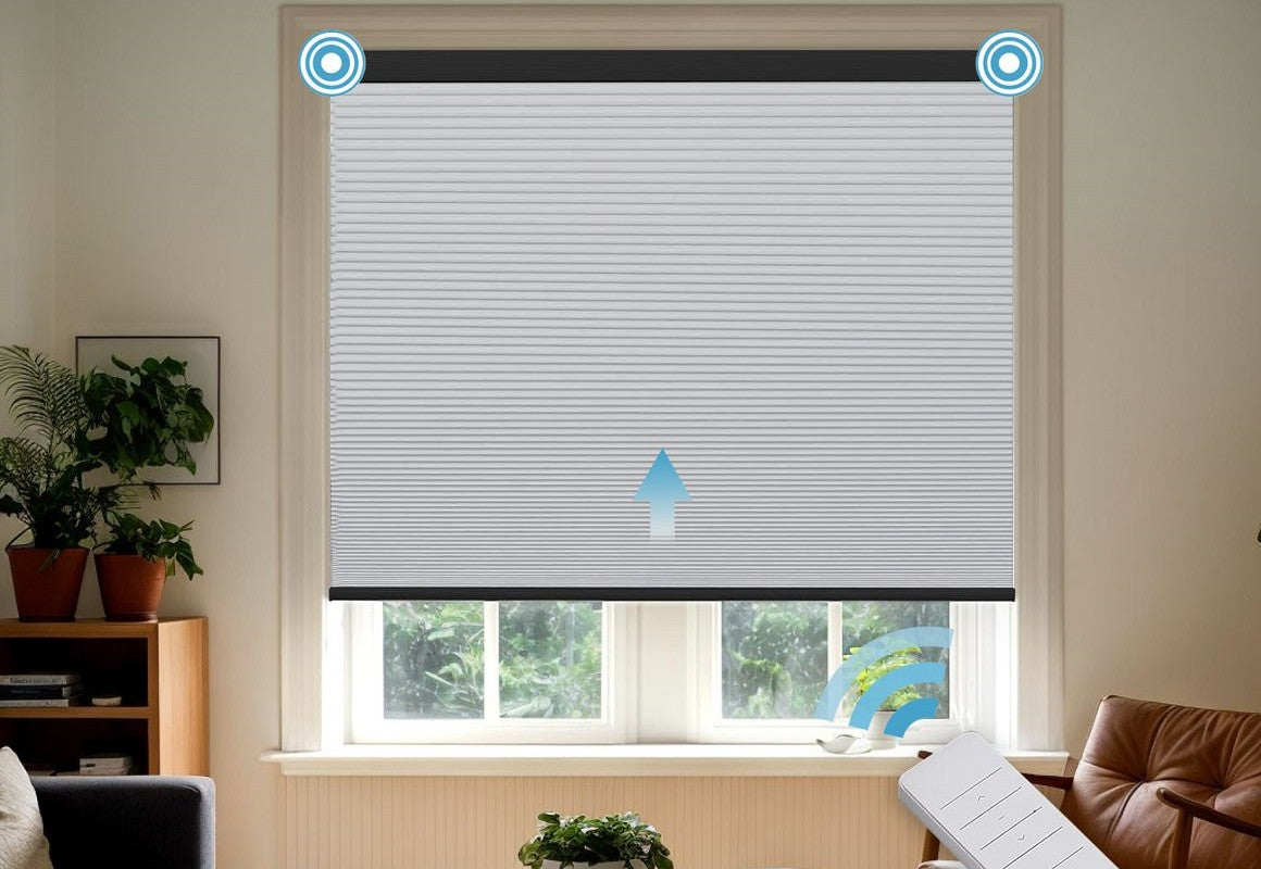 Experience unmatched comfort and energy efficiency with our Motorized Blackout Honeycomb/Cellular Shades. Designed with a unique cellular structure that traps air, these shades help regulate indoor temperature year-round while blocking out unwanted light. With whisper-quiet motorized control, enjoy ultimate convenience at the touch of a button. Ideal for bedrooms, nurseries, and media rooms seeking total darkness and insulation.