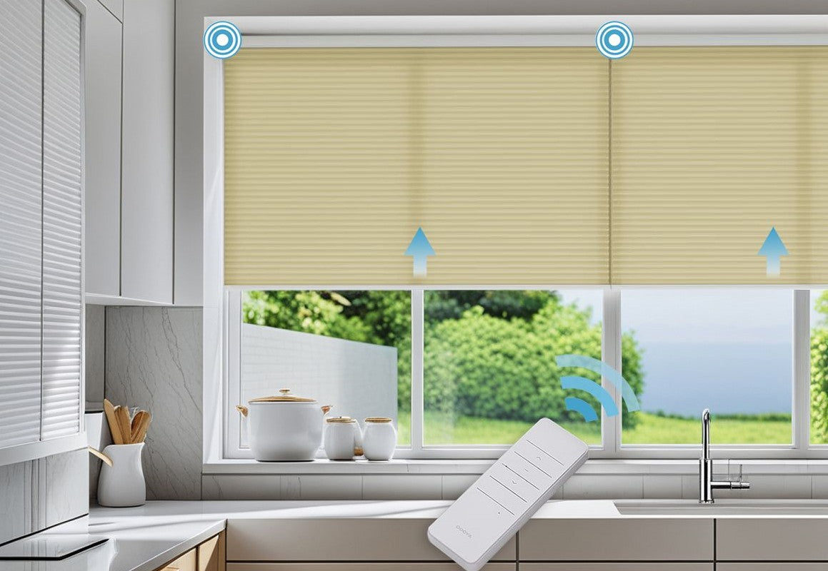 Enhance your space with our Motorized Light Filtering Honeycomb/Cellular Shades—a perfect balance of gentle natural light and privacy. Featuring an insulating honeycomb design, these shades help regulate indoor temperatures while reducing glare. Enjoy seamless control at the touch of a button. Ideal for living rooms, kitchens, and offices where soft light and modern convenience matter.