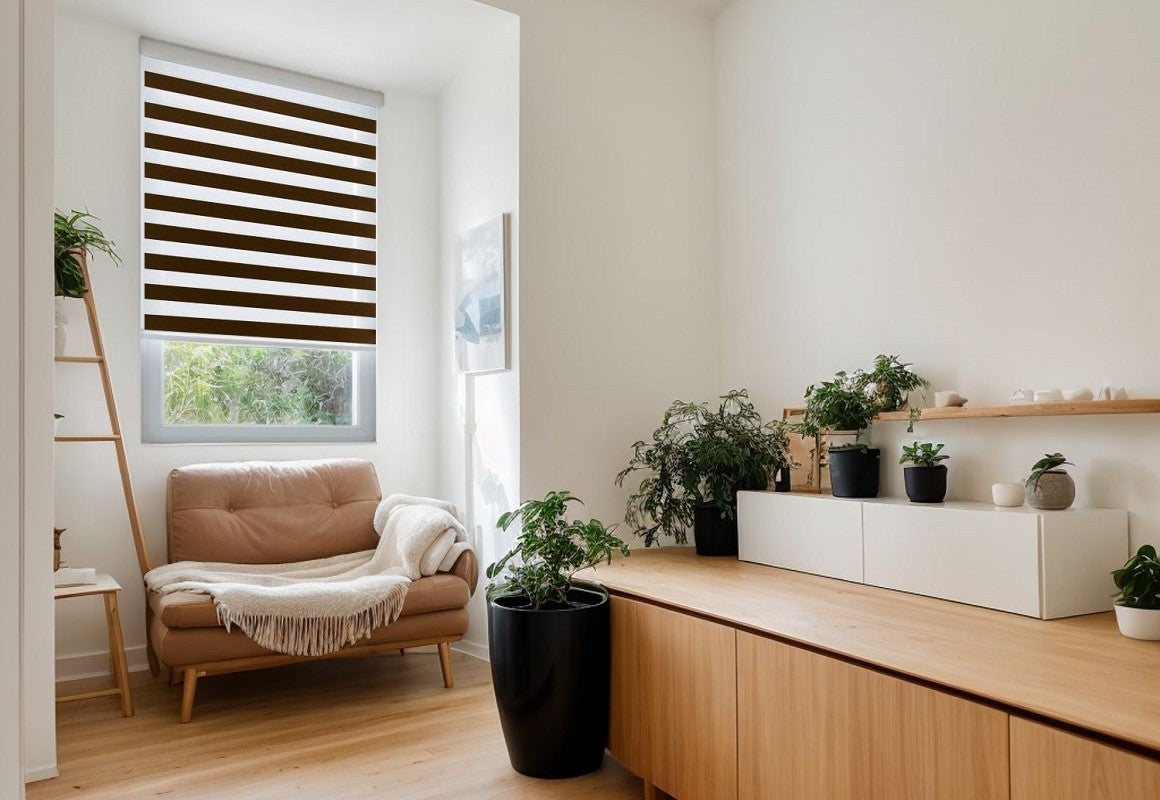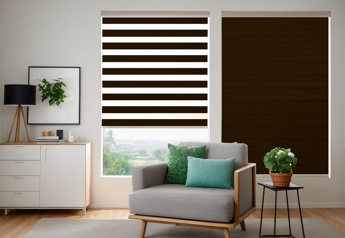 Transform your space with No Drill Blackout Zebra Shades, combining modern aesthetics with total darkness. Featuring alternating dual-layer blackout fabric bands, these shades eliminate light leaks for bedrooms, home theaters, or nurseries while offering effortless installation, no tools or drilling required.