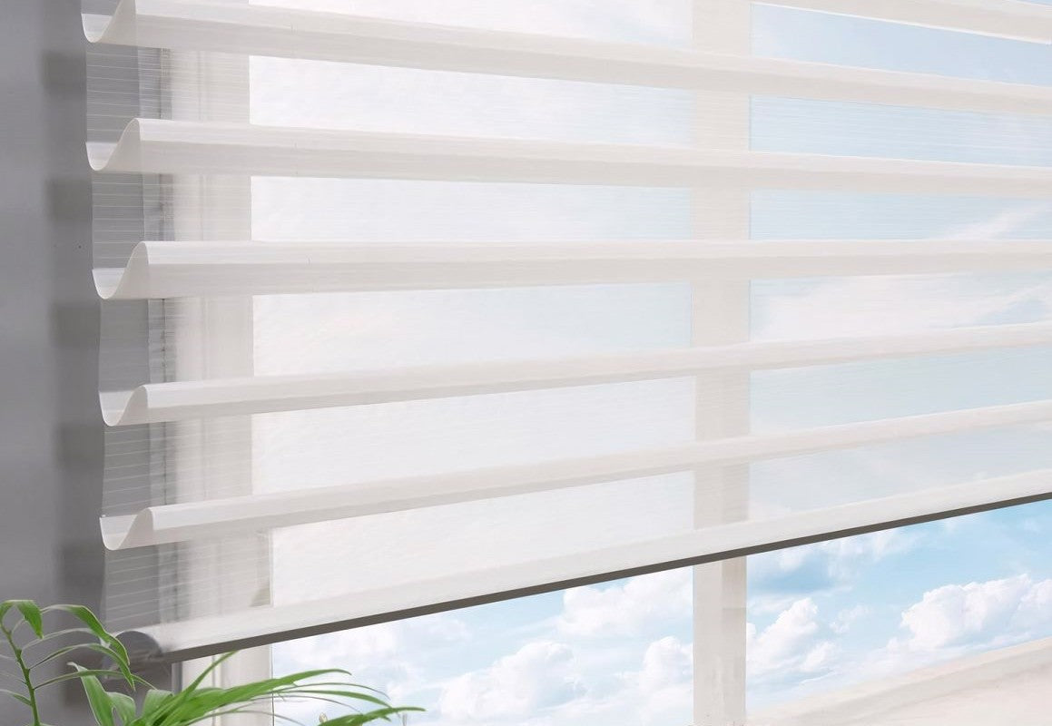 Experience soft, diffused light and modern elegance with our Motorized Light Filtering Shangri-La Blinds. Designed with horizontal fabric vanes suspended between two sheer layers, these blinds offer precise light control while maintaining privacy. With motorized operation, adjusting your ambiance is effortless—ideal for living rooms, offices, and lounges that benefit from filtered natural light.