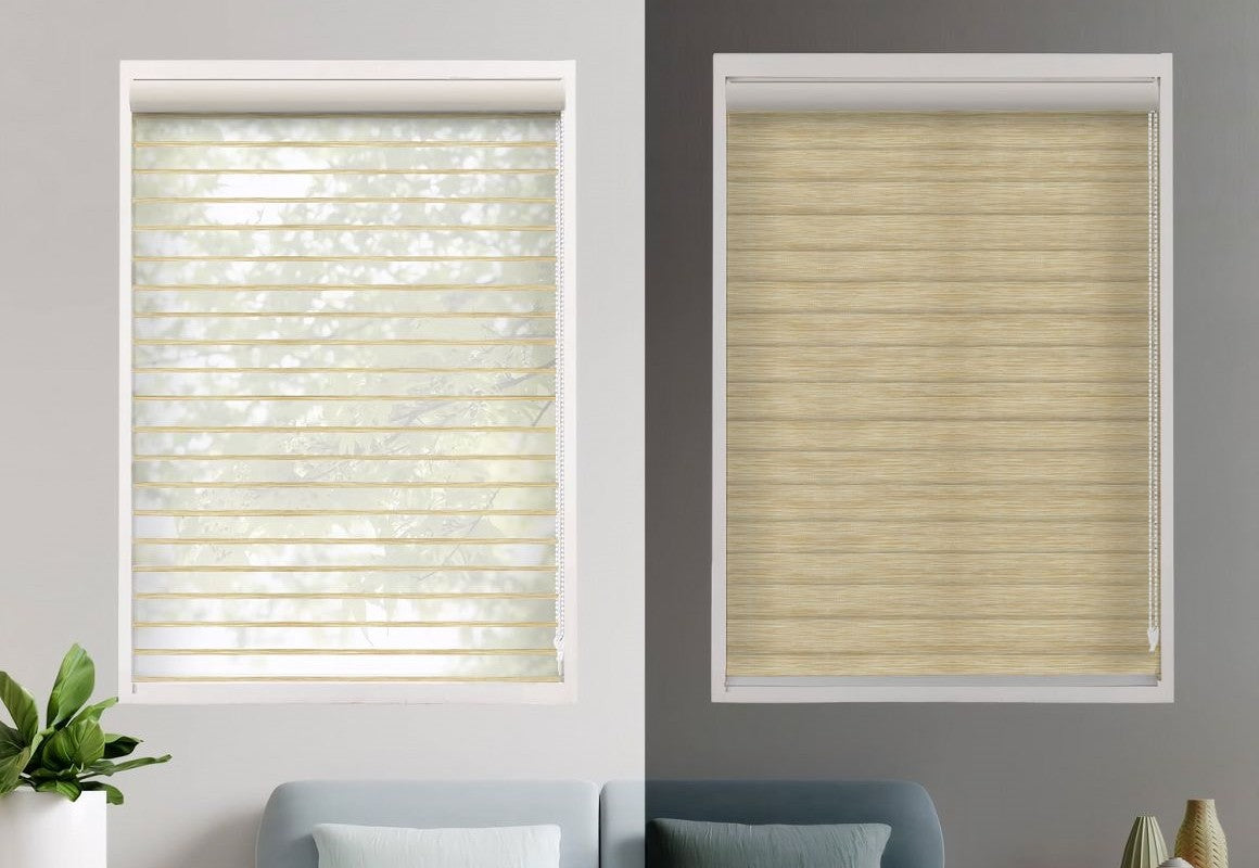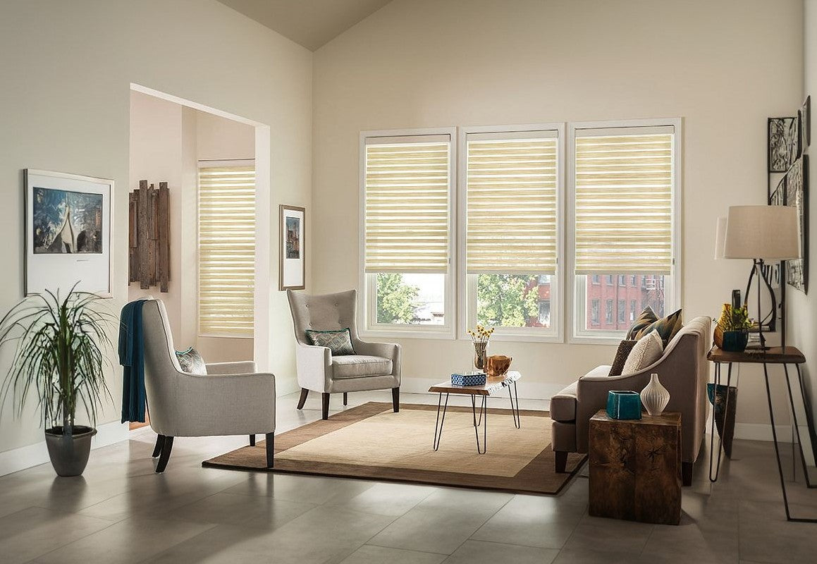 Transform your space with No Drill Light Filtering Shangri-La Blinds, where modern design meets functional elegance. Designed to gently diffuse sunlight into a warm, inviting glow, these blinds balance privacy and natural illumination, perfect for living rooms, bedrooms, nurseries, and home offices. Enjoy a serene ambiance without compromising on style or convenience.