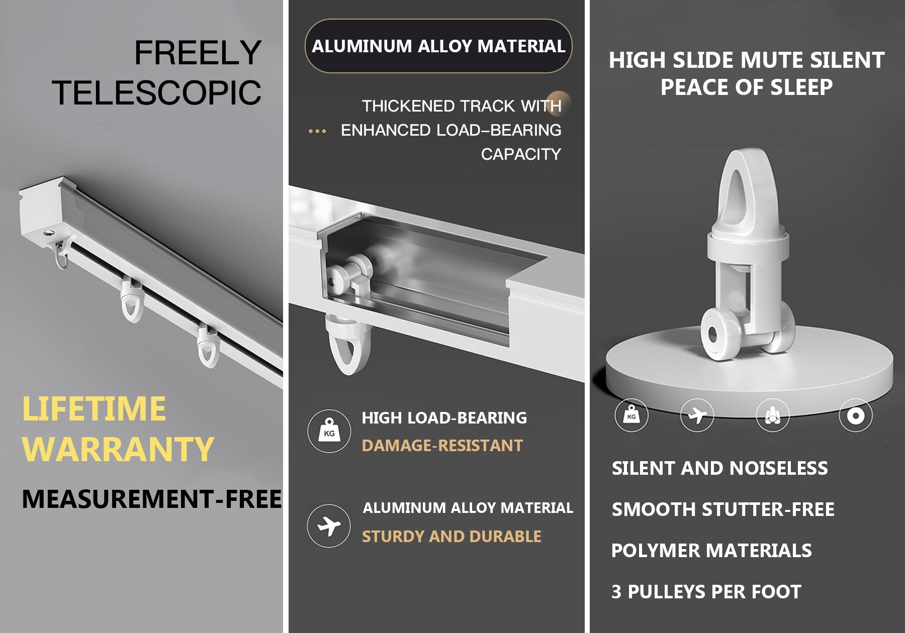 Adjustable Length for a Perfect Fit: Say goodbye to ill-fitting curtains! This track set is easily adjustable to fit windows of various sizes, ensuring a perfect fit every time.