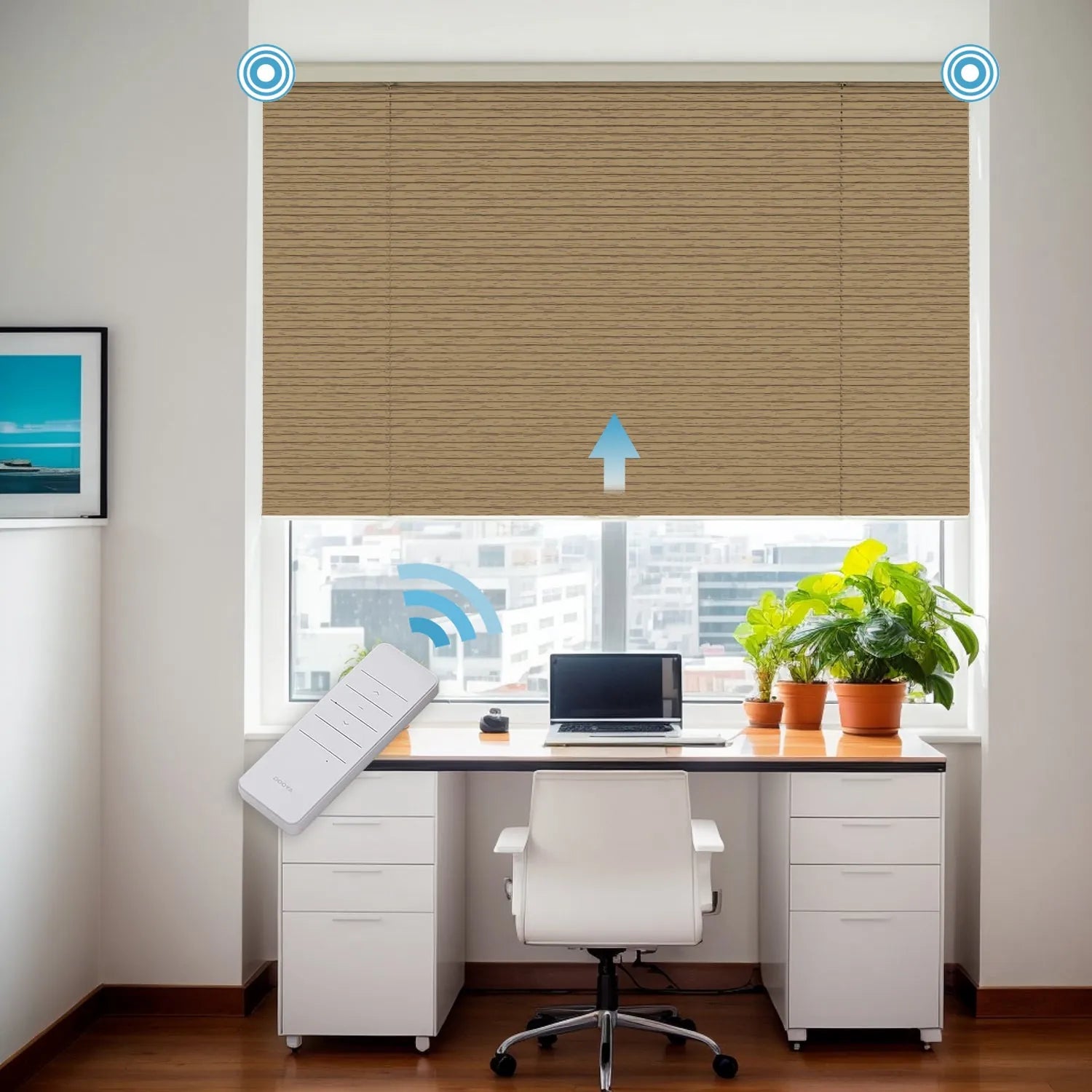 Bring natural warmth and modern functionality together with our Motorized Wood Grain Aluminum Venetian Blinds. These innovative blinds feature lightweight yet durable aluminum slats, beautifully finished with a realistic wood grain texture that mimics the elegance of real wood—without the maintenance. The motorized design allows you to adjust light and privacy effortlessly via remote control, making them an ideal choice for smart homes, high windows, or minimalist interiors seeking a touch of organic charm.