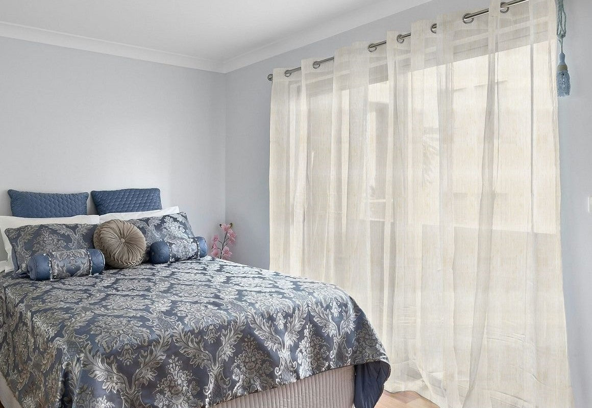 Bring natural elegance into your space with our Linen Textured Sheer Grommet Curtains. Featuring a soft, airy design and delicate linen-like texture, these sheer drapes gently diffuse light while maintaining a bright and open ambiance. The high-quality fabric adds a subtle organic charm to your interiors, making them perfect for both modern and farmhouse settings. Metal grommets provide a sleek finish and ensure easy installation with a smooth glide. Ideal for living rooms, bedrooms, or dining areas, these curtains offer the perfect balance of simplicity, texture, and light.