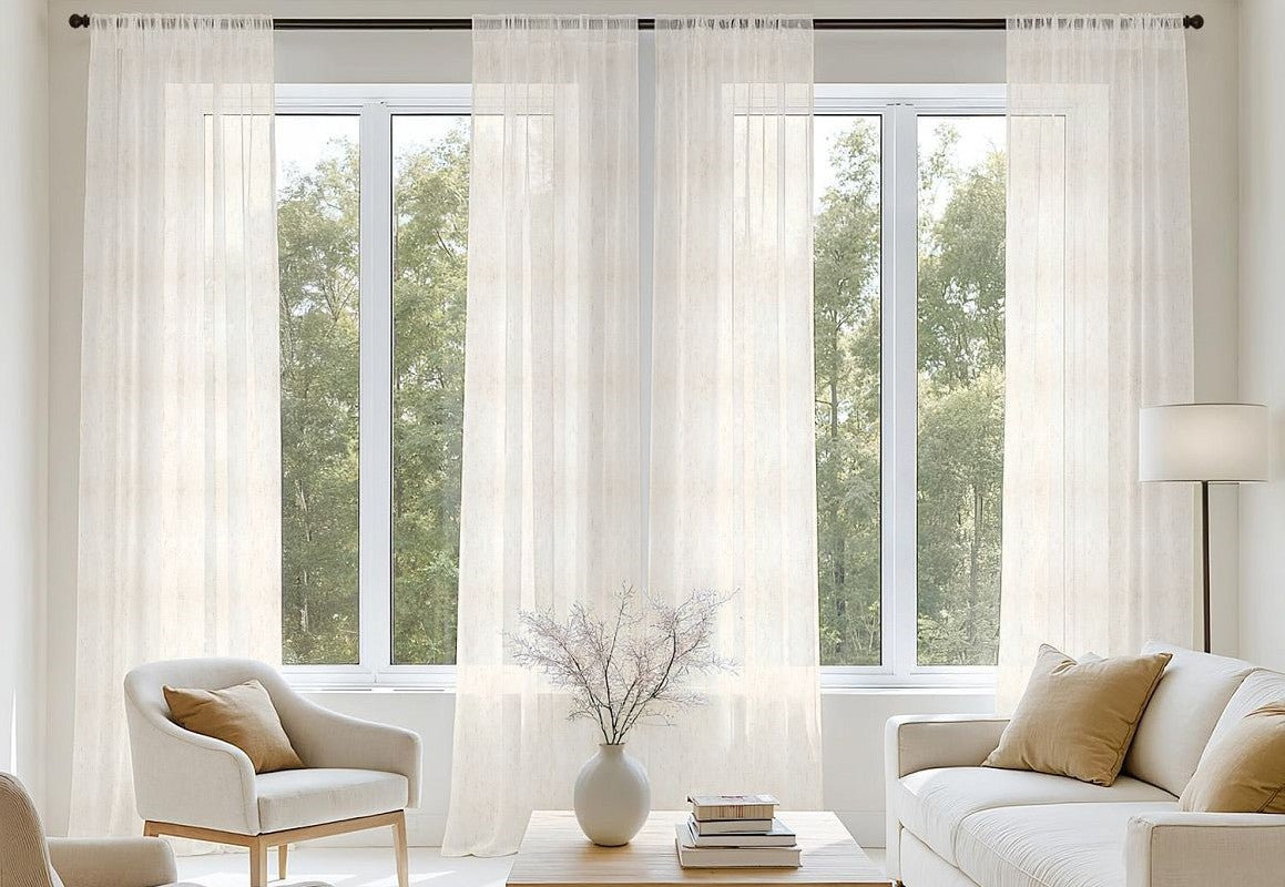 Bring effortless elegance to your home with our Linen Textured Sheer Rod Pocket Curtains/Drapes. Crafted from lightweight, breathable fabric with a subtle linen texture, these sheers gently diffuse natural light, creating a soft, inviting glow while preserving a sense of openness. The timeless design suits both modern and classic interiors, adding depth and warmth to any room. Featuring a convenient rod pocket top, they are easy to hang and deliver a clean, tailored finish to your windows.