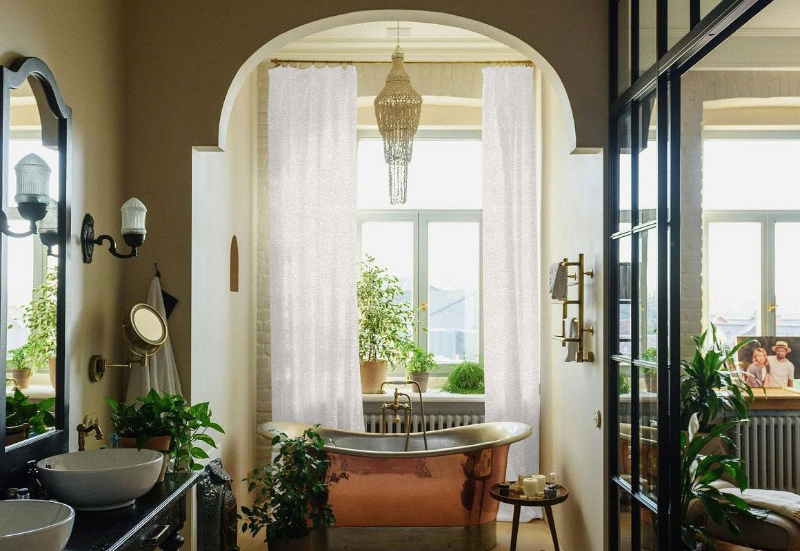 Curtain fullness refers to the relationship between the ordering width and the amount of fabric used in your curtains. The ordering width is the measurement of the area you want to cover, usually the width of your curtain rod (between the finials) or track. Fullness is a key aspect of curtain design, as it determines how the fabric will drape and gather when hung. Different heading styles require different fullness ratios, since some styles naturally use more fabric to achieve their intended look.