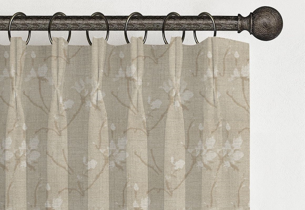 Add refined floral elegance and superior light control to your windows with Magnolia Printed Linen Blackout Pinch Double Pleats Draperies, crafted from a premium blend of 15% natural linen and 85% durable polyester. The linen fibers provide a soft, textured feel, while polyester ensures strength, wrinkle resistance, and easy maintenance. Designed with pinch double pleats, these draperies create structured, tailored folds that add sophistication to any room. The charming magnolia print enhances aesthetic appeal, while the blackout fabric effectively blocks sunlight and ensures privacy, making them ideal for bedrooms, living rooms, or media spaces. A perfect combination of style, texture, and functional performance.
