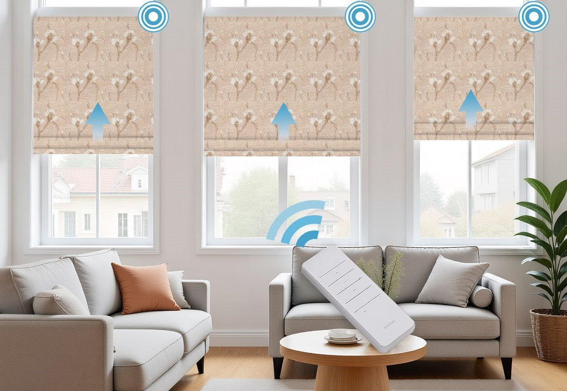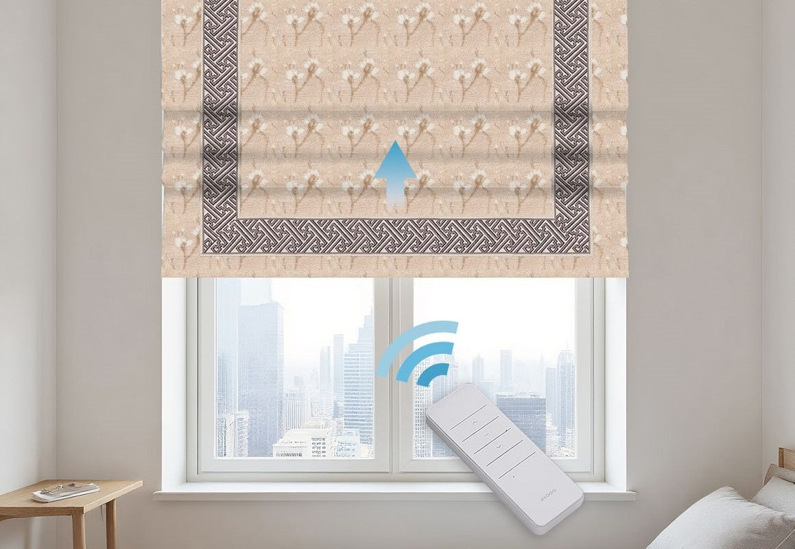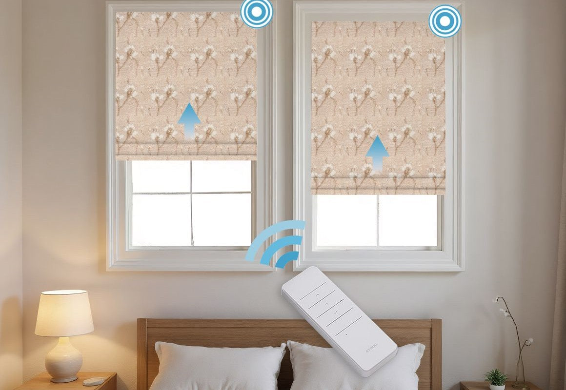 Combine modern convenience with floral elegance using Motorized Linen Magnolia Printed Blackout Roman Shades, crafted from a premium blend of 15% natural linen and 85% durable polyester. The linen fibers provide a soft, textured feel, while polyester ensures durability, wrinkle resistance, and easy maintenance. These motorized Roman shades offer effortless operation via remote control, allowing you to raise or lower the shades smoothly. The charming magnolia print adds a sophisticated decorative touch, while the blackout fabric effectively blocks sunlight and enhances privacy. Perfect for bedrooms, living rooms, or media spaces, these shades combine natural beauty, functional light control, and modern automation.