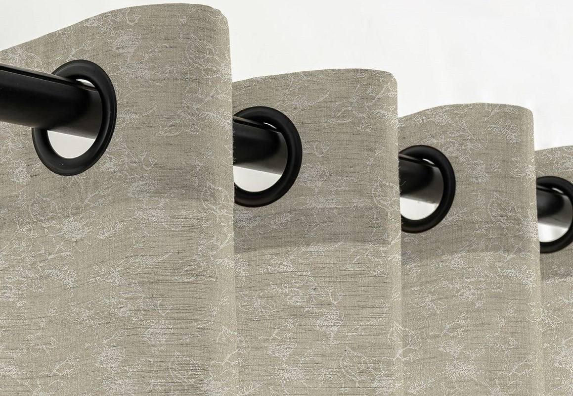 Bring timeless elegance to your home with our Linen-Cotton Floral Jacquard Textured Blackout Grommet Curtains/Drapes. Expertly woven from a durable polyester, these curtains feature an intricate floral jacquard pattern with a rich, textured finish. The blackout lining ensures excellent light blocking, noise reduction, and enhanced privacy, creating a calm, comfortable space. Designed with sturdy metal grommets for smooth gliding and easy installation, they combine style, function, and lasting quality-perfect for bedrooms, living rooms, or any space in need of refined charm.