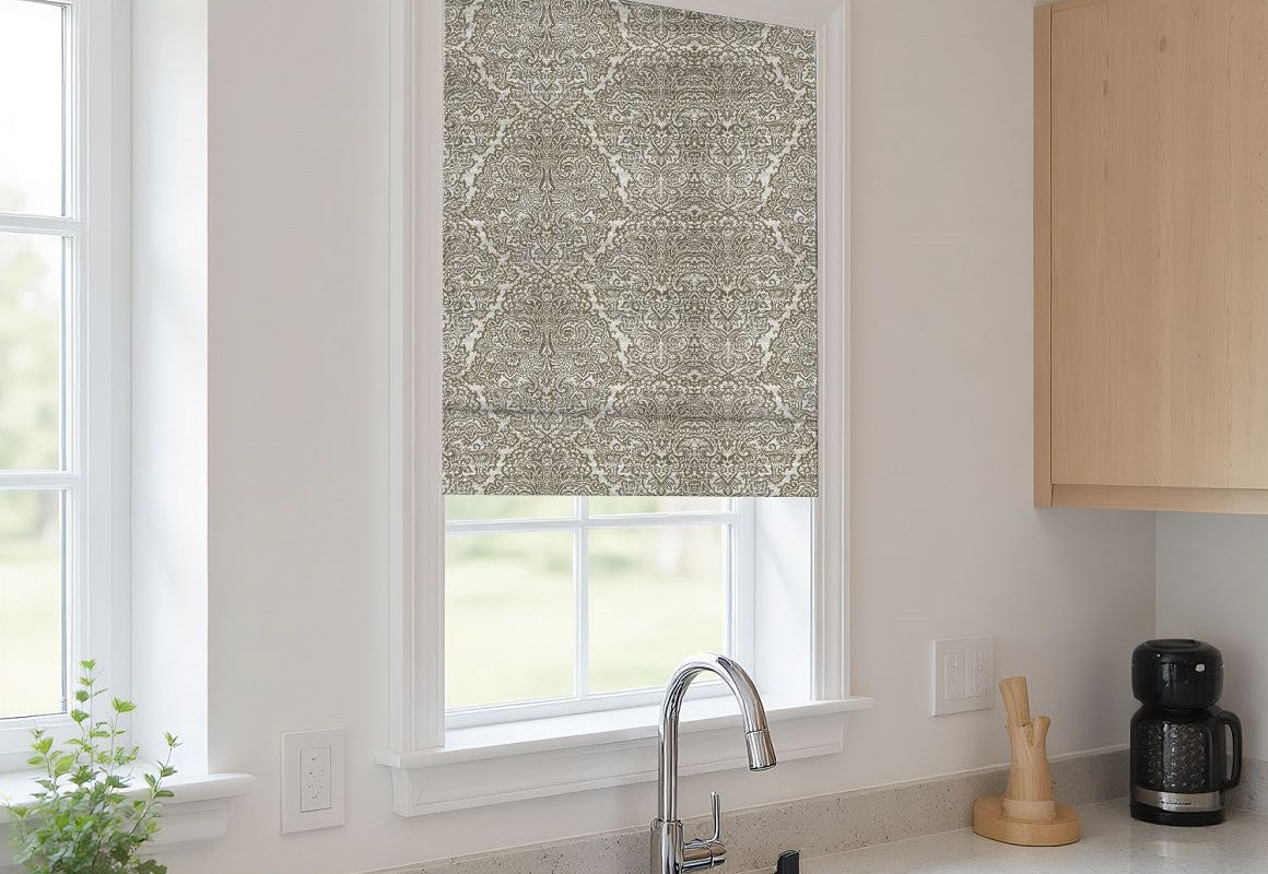 Elevate your interiors with the timeless charm of Linen Baroque Jacquard Blackout Roman Shades. Crafted from a premium blend of 15% linen and 85% polyester, these shades offer the natural elegance of linen combined with the strength and easy care of polyester. The intricate baroque jacquard design adds a luxurious decorative touch, making them a stunning centerpiece in any room. Designed with a smooth Roman fold, they create a sophisticated, structured look while providing excellent blackout performance to block light, enhance privacy, and improve insulation. Ideal for bedrooms, living rooms, or dining spaces, these shades bring classic beauty and modern functionality together.
